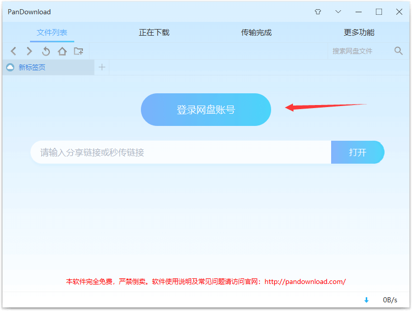①运行软件后首先需要登录百度账号,在新标签页点击登录网盘账号按钮,输入用户名和密码点击登录即可,也可以使用QQ、微博等第三方账号登录