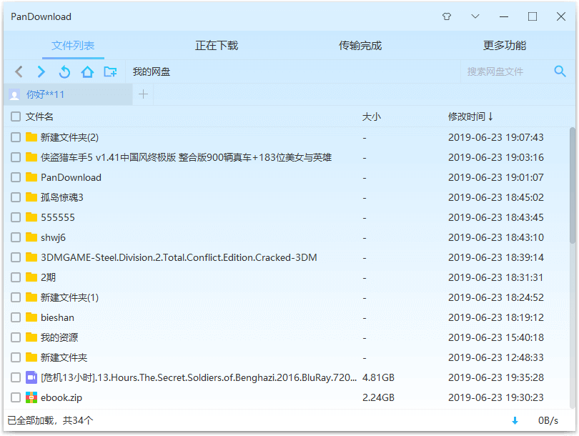 ②登录成功后会自动获取文件列表,之后就可以进行文件下载、分享、删除等操作啦